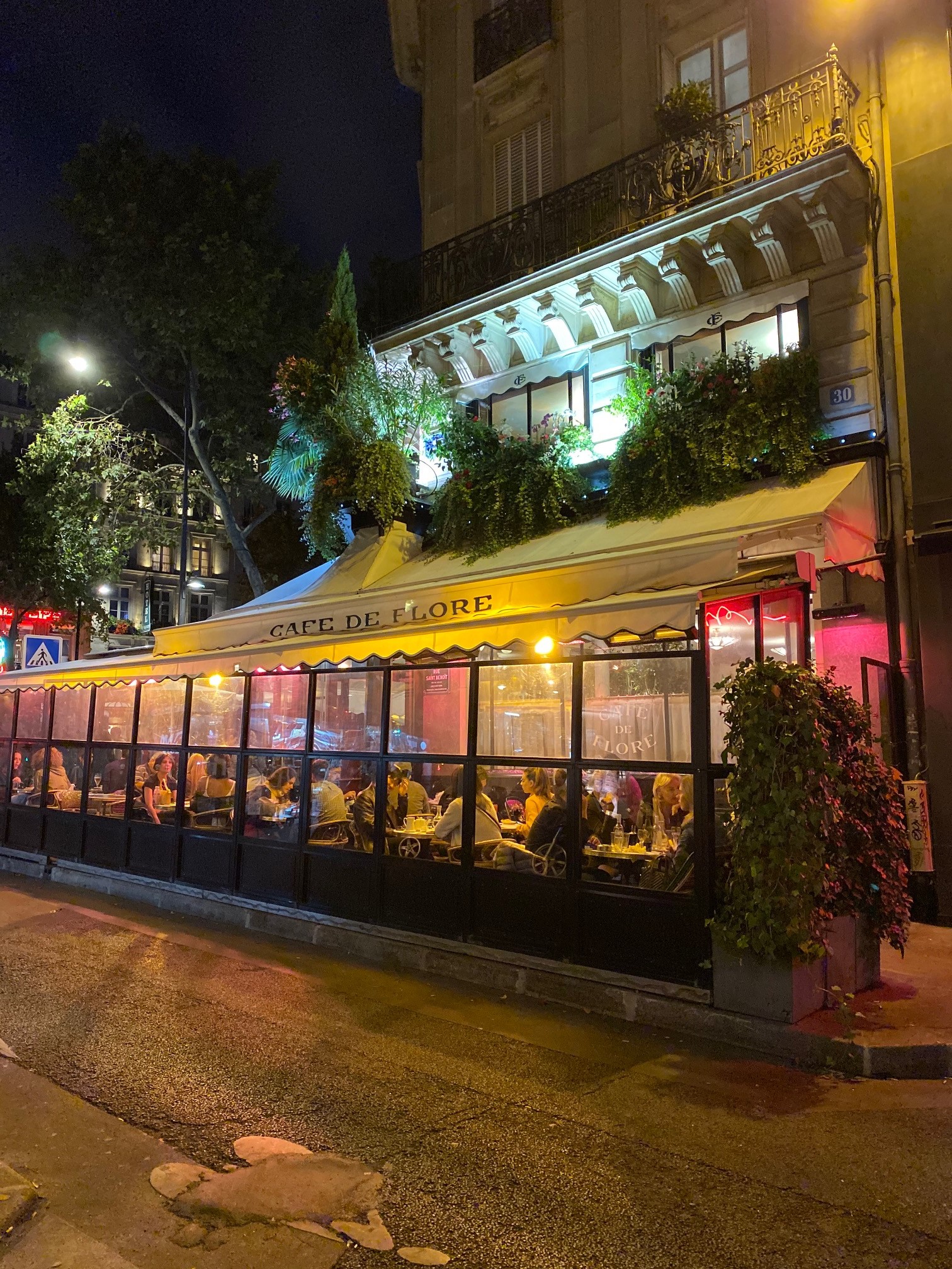 이젠 정말 돌아가야 할 시간. 구글지도로 단시간, 단거리로 숙소에 도착할 수 있는 교통편을 알아보니 다리 건너 메트로 역에서 지하철을 타야 한단다. 그렇게 센강을 다시 한번 건너고 6th ARR. 동네의 문 닫은 갤러리 골목을 지나 가로등의 노란빛이 뿌옇게 내리는 길을 걸어 Saint-Germain-des-Pres역으로 향하던 중 지도를 보니 멀지 않은 곳에 유명한 카페가 있다! 도토리가 잔뜩 달린 졸참나무를 발견한 다람쥐라도 된 것 마냥 잰걸음으로 그곳을 향했다.