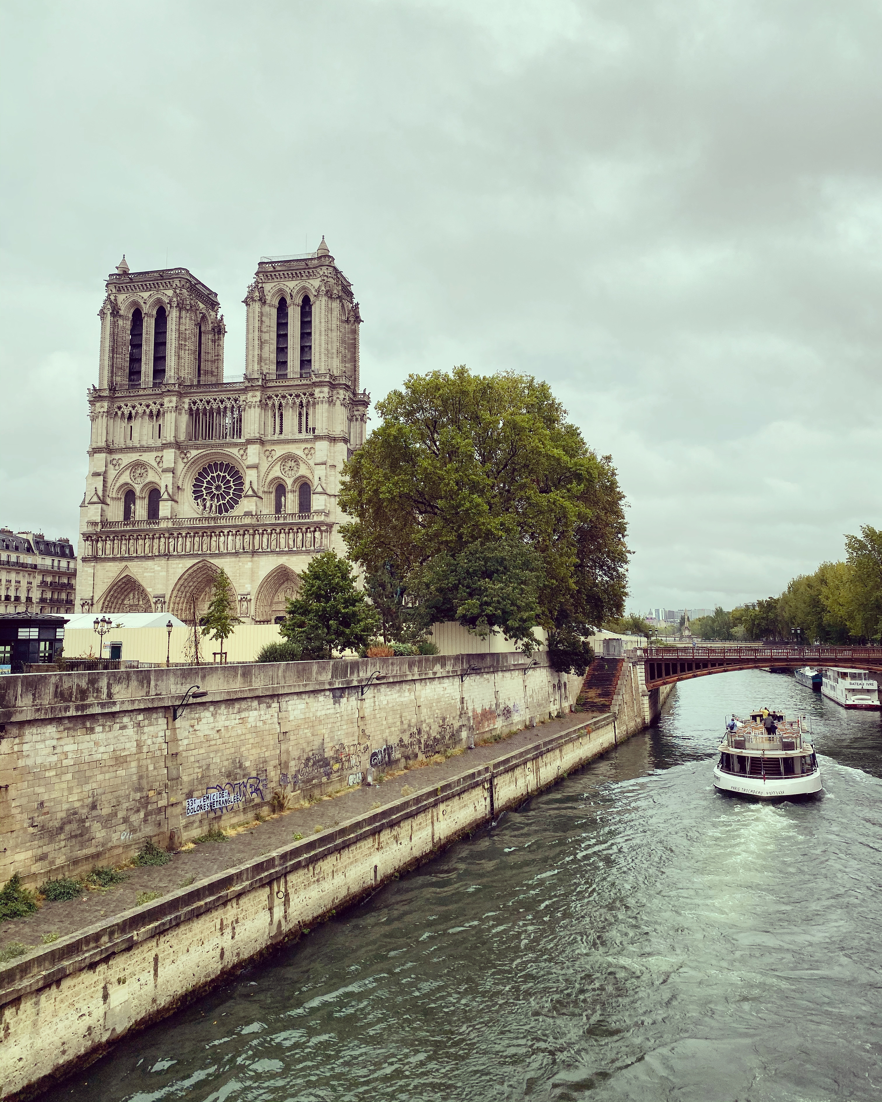 서점 바로 앞에는 센강이 흐르고 그 가운데 있는 시테섬에 노트르담 대성당이 자리잡고 있다. 프랑스 고딕 양식으로 지어진 파리를 대표하는 이 건축물은 안타깝게도 지난 4월 보수공사 중 화재가 발생해 첨탑과 목조 지붕이 소실되었다. 한국사람이라면 누구나 공감했을... 숭례문이 무너져내리는 뉴스를 보며 마음 졸이고 비통해하던 그때가 오버랩되는. ㅠㅠ 화재 후 프랑스 정부는 5년 안에 복원하겠다고 선언, 현대적으로 접근한 여러 가지 설계안이 공개되는데... 불행 중 다행으로 7월 프랑스 의회는 화재 이전 모습 그대로 복원하는 법안을 통과시킨다. 그렇다, 노트르담 성당은 내 기억 속 그 모습 그대로여만 한다.
